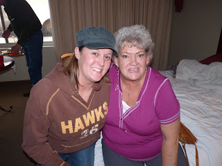 Okay, made it to the hotel. Now we are all parked in Gramps and Mom's room for some "pre dinner" cocktails. Or maybe it was "pre-winner" cocktails. Take your pick!